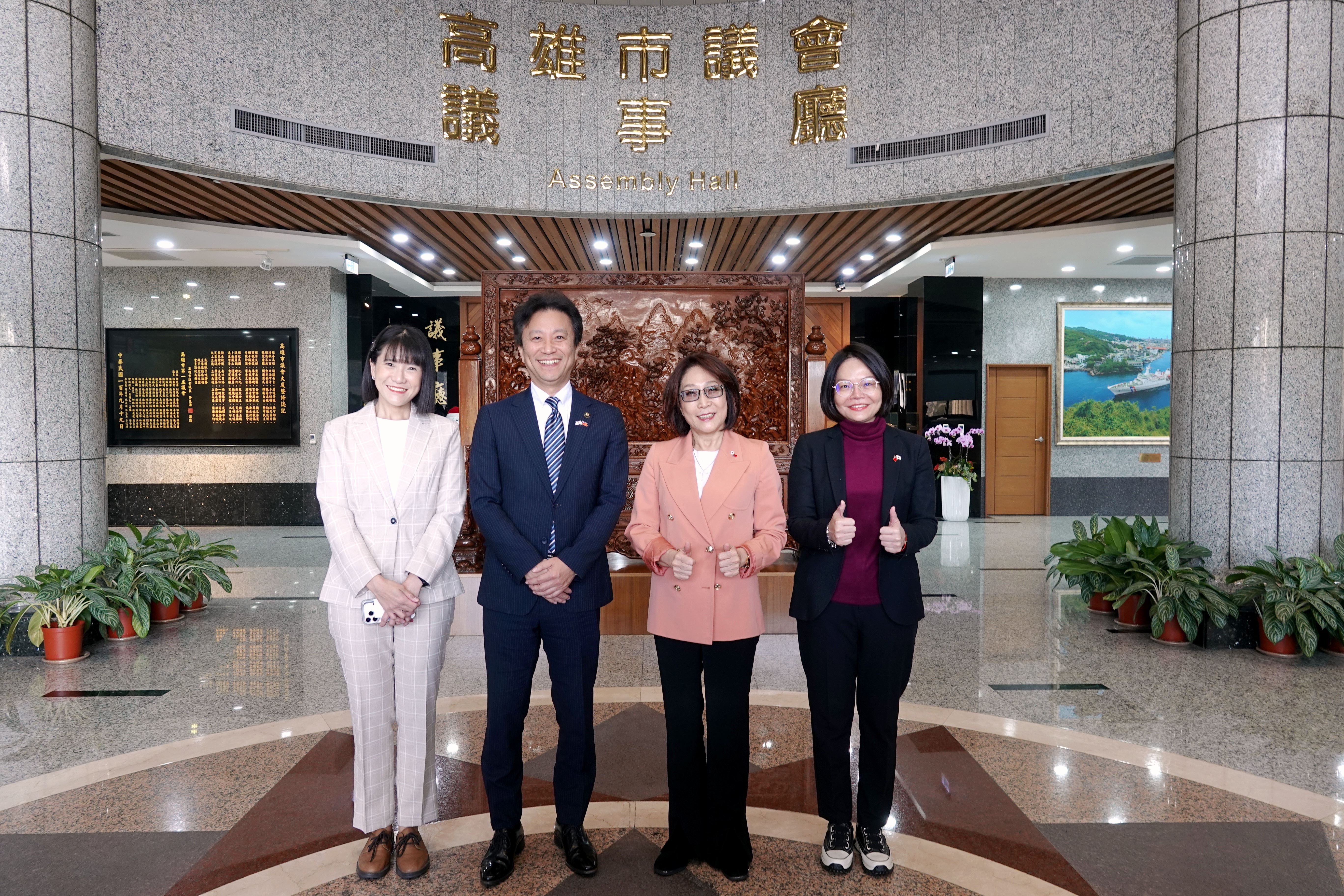 康議長也特別感謝氷見市對鼓山區、中山大學及高雄市立歷史博物館等單位的信任與支持,在地方治理、學術文化與歷史傳承上建立夥伴關係;她期盼,高雄與氷見能在百年情誼的基礎上,攜手走向更長遠的未來。