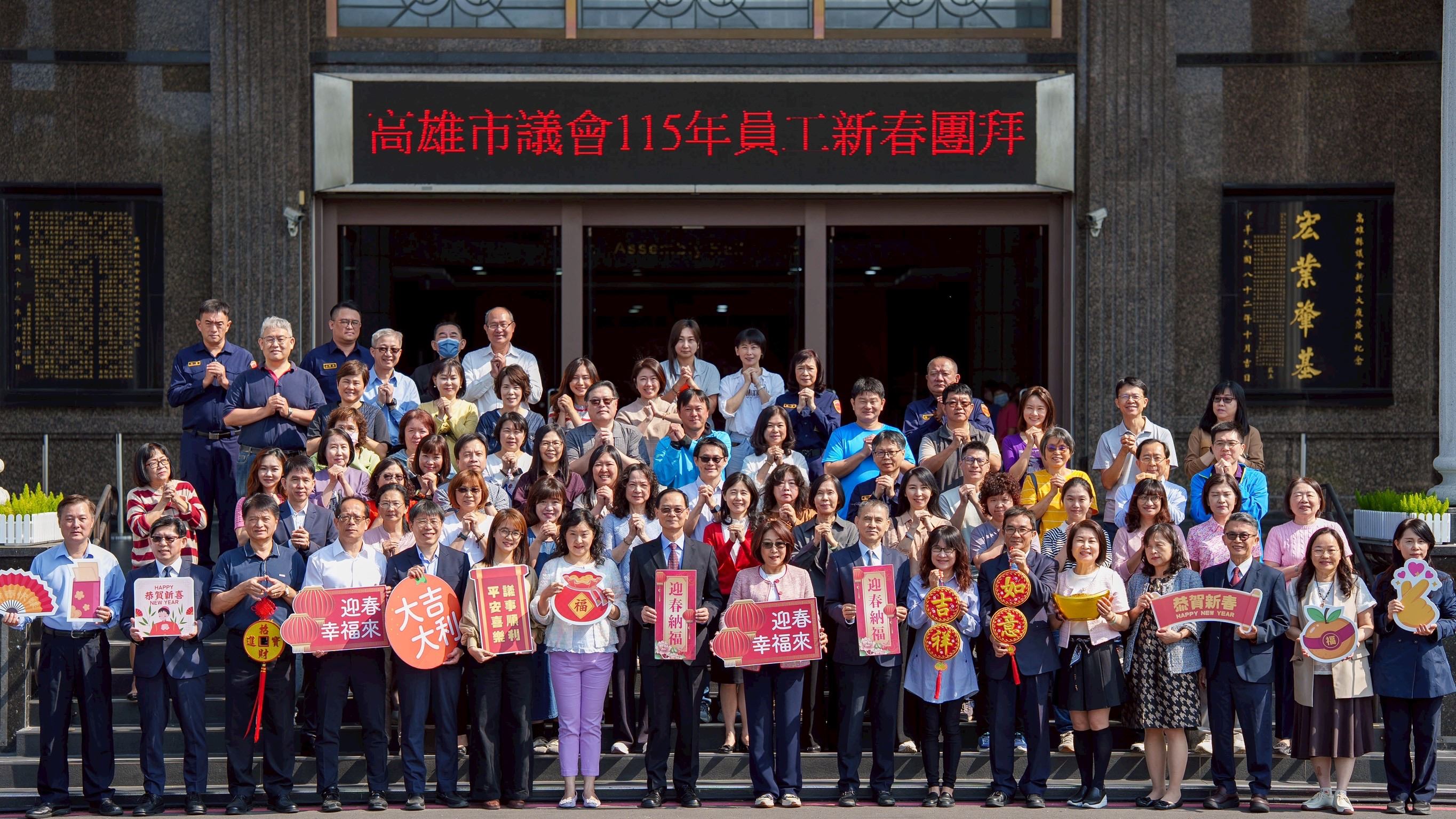 (高雄訊)金馬年開工第一天,議會今(23)日援例舉辦新春團拜活動,議長康裕成與全體同仁齊聚一堂互道恭喜,現場洋溢濃濃年味與歡笑聲;康議長鼓勵全體同仁持續從挑戰中成長,面對議員所有的疑難雜症,都能做足準備。