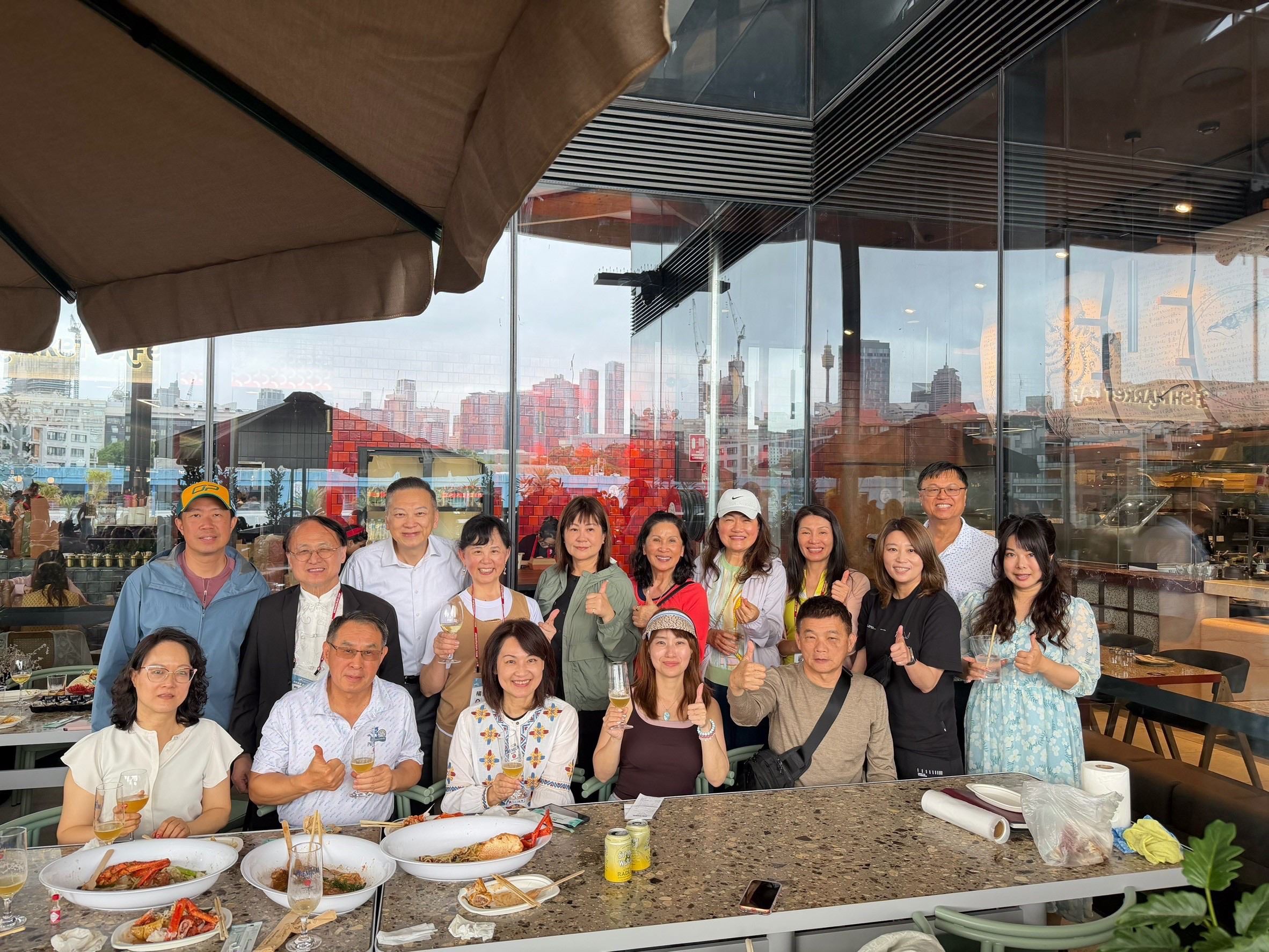 訪團8日也展開雪梨城市觀摩行程,先後走訪南威爾斯美術館,觀察澳洲文化藝術與城市公共空間的融合;並前往澳洲新建魚市場參訪,親自挑選漁貨由餐廳現場料理,體驗當地海鮮文化。用餐時也巧遇多位來參加世台總活動的台商朋友與遠從北美到訪的台僑鄉親,大家談笑寒暄,現場氣氛宛如回到高雄。下午訪團繼續走訪雪梨岩石區假日市集,體驗澳洲在地文創市集與手作甜點文化,透過實地觀察城市文化、觀光與產業空間的結合,不僅有助於理解不同城市的發展脈絡,也能為高雄未來在文化觀光與城市品牌推動上提供借鏡。