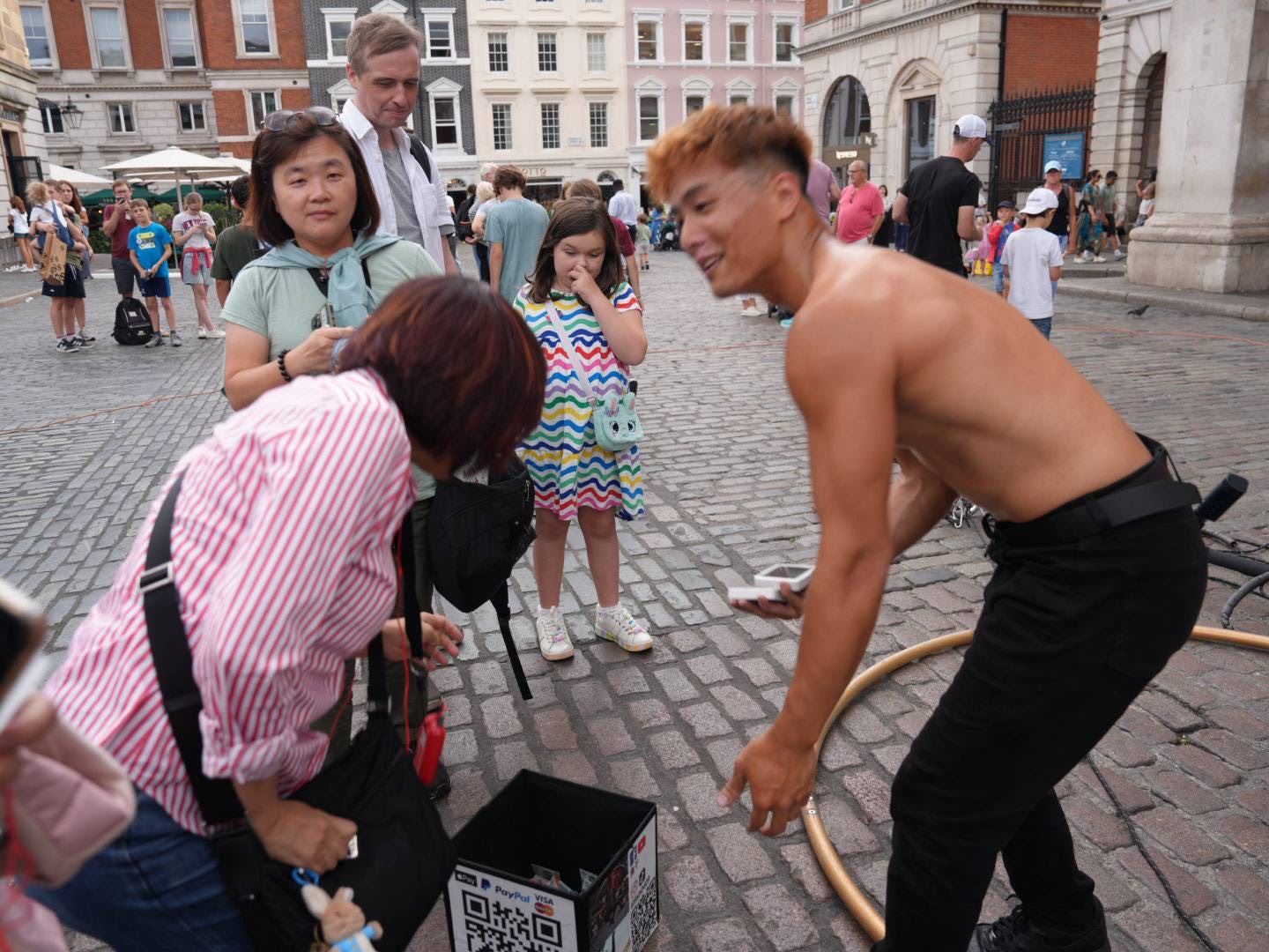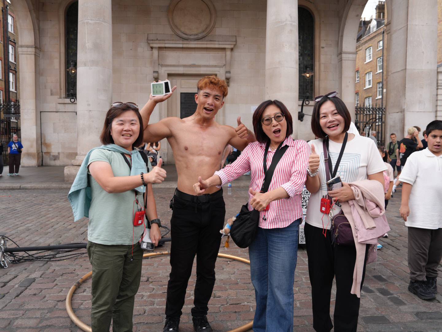 【高雄訊】議長康裕成率領26位議員組成的城市交流參訪團,行程尾聲8月19日前往英國倫敦知名的柯芬園(Covent Garden)進行參訪時,竟意外巧遇正在進行街頭演出的台灣街頭藝人—魚干,讓康議長驚喜萬分、滿臉笑容,感動地說:「在這裡看到台灣年輕人發光發熱,真的好親切、好驕傲!」