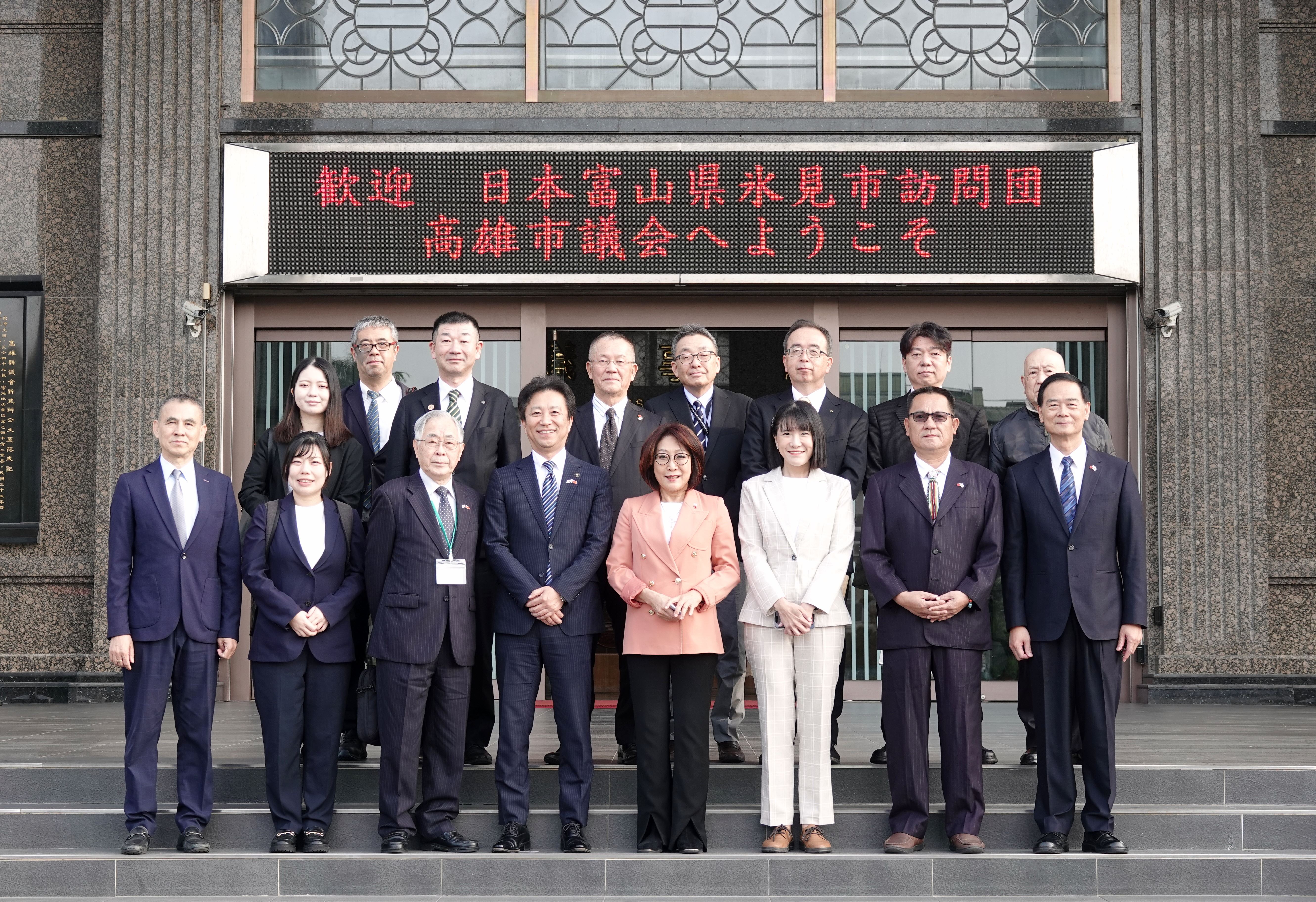 日本富山縣氷見市市長菊地正寬115年1月28日首度拜訪議會,議長康裕成偕國民外交促進會議員熱情接待。康議長表示,高雄與氷見是一段跨越百年的深厚情誼,期盼在前人奠定的基礎上,再續這段珍貴的百年緣分。
